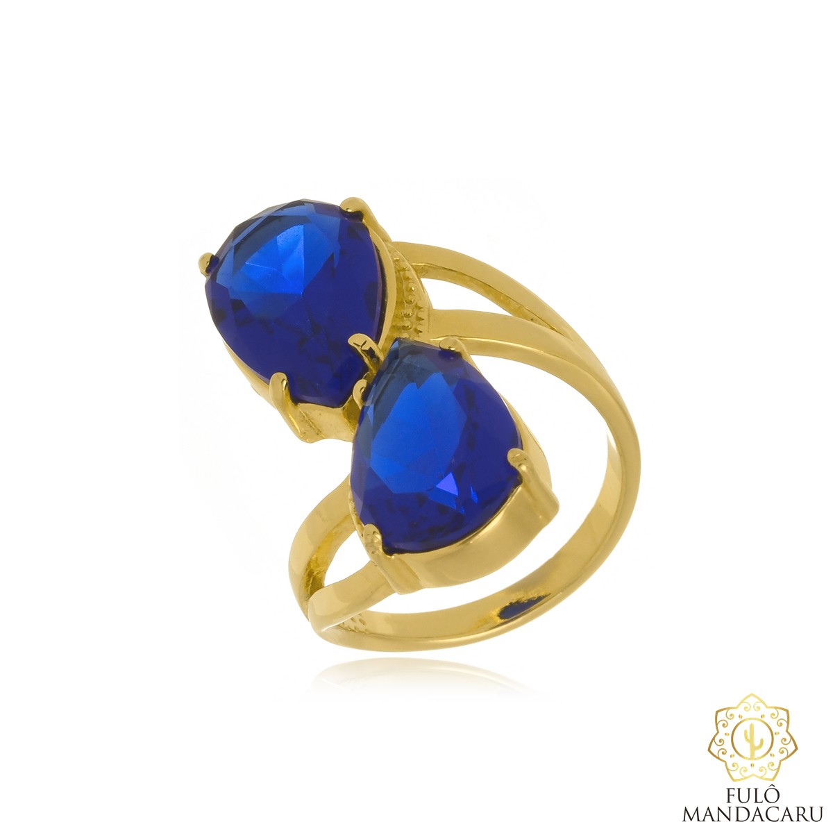 Traga o luxo e a intensidade da cor azul para o seu visual com o Anel Duplo Duas Gotas Zircônia Azul. Esta semijoia de alto padrão apresenta duas pedras no formato de gota, cravadas em um design moderno e entrelaçado, totalmente banhado a Ouro 18k.
